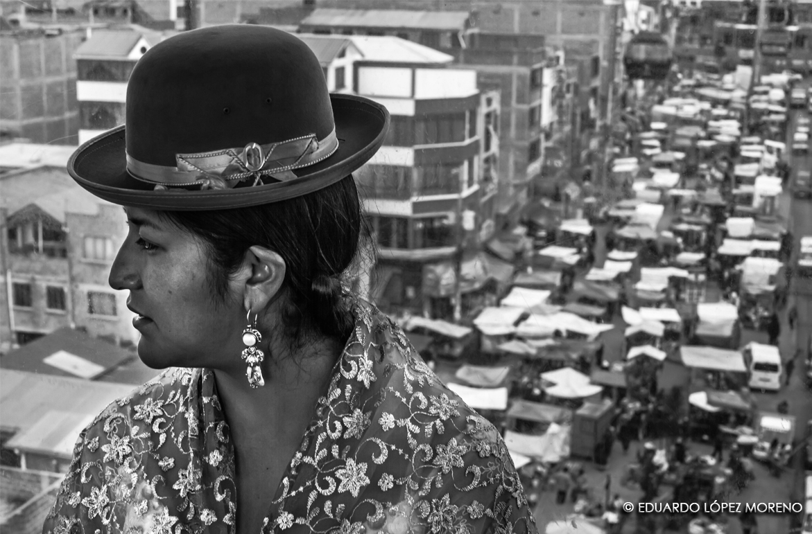 The silhouette of the characteristic bombin, hat, El Alto, Bolivia (2)