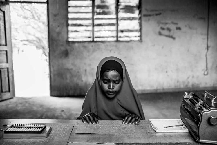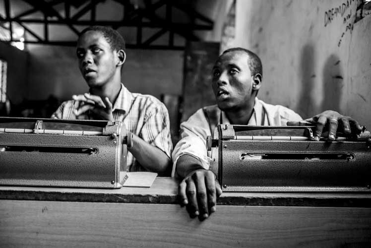 These young boys and girls are poor, some of them abandoned, other live in refugee camps, and not only that they are also blind. A triple jeopardy in an unjust world. With some exceptions, they lost their sight in the places where they live very possibly by a curable disease. A group of albino children with a very limited vision share a classroom with these completely blind children in Tika Village in the outskirts of Nairobi in a private school. They receive classes from teachers who are also blind or with poor vision.
