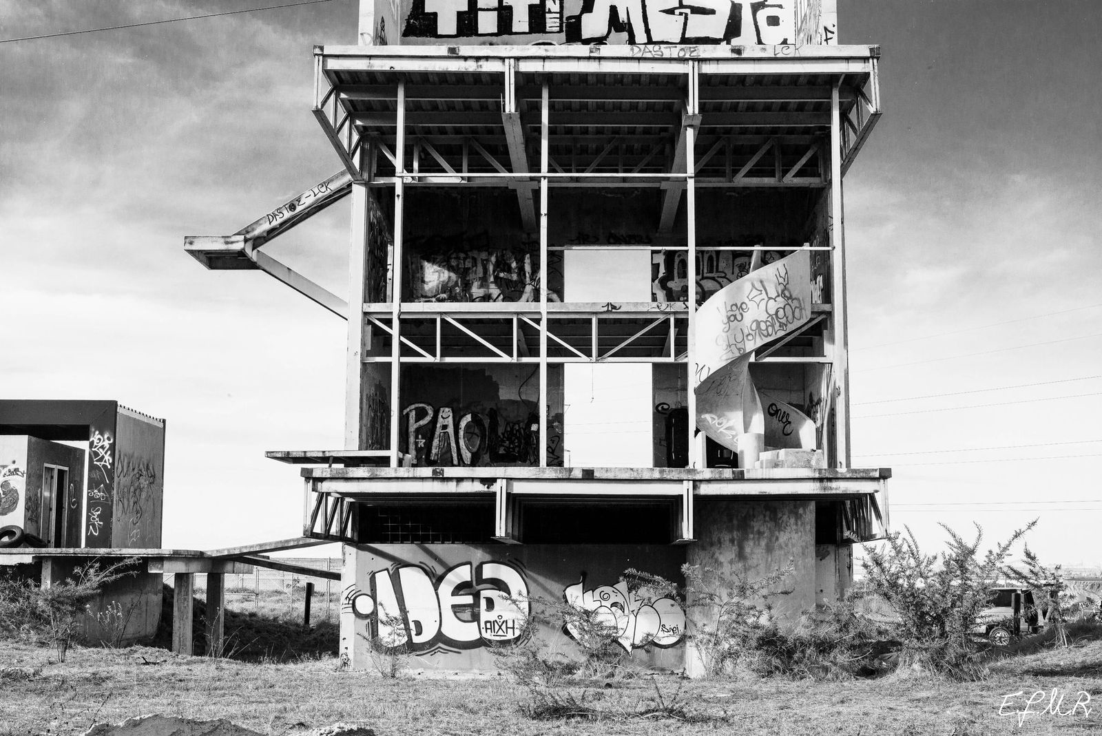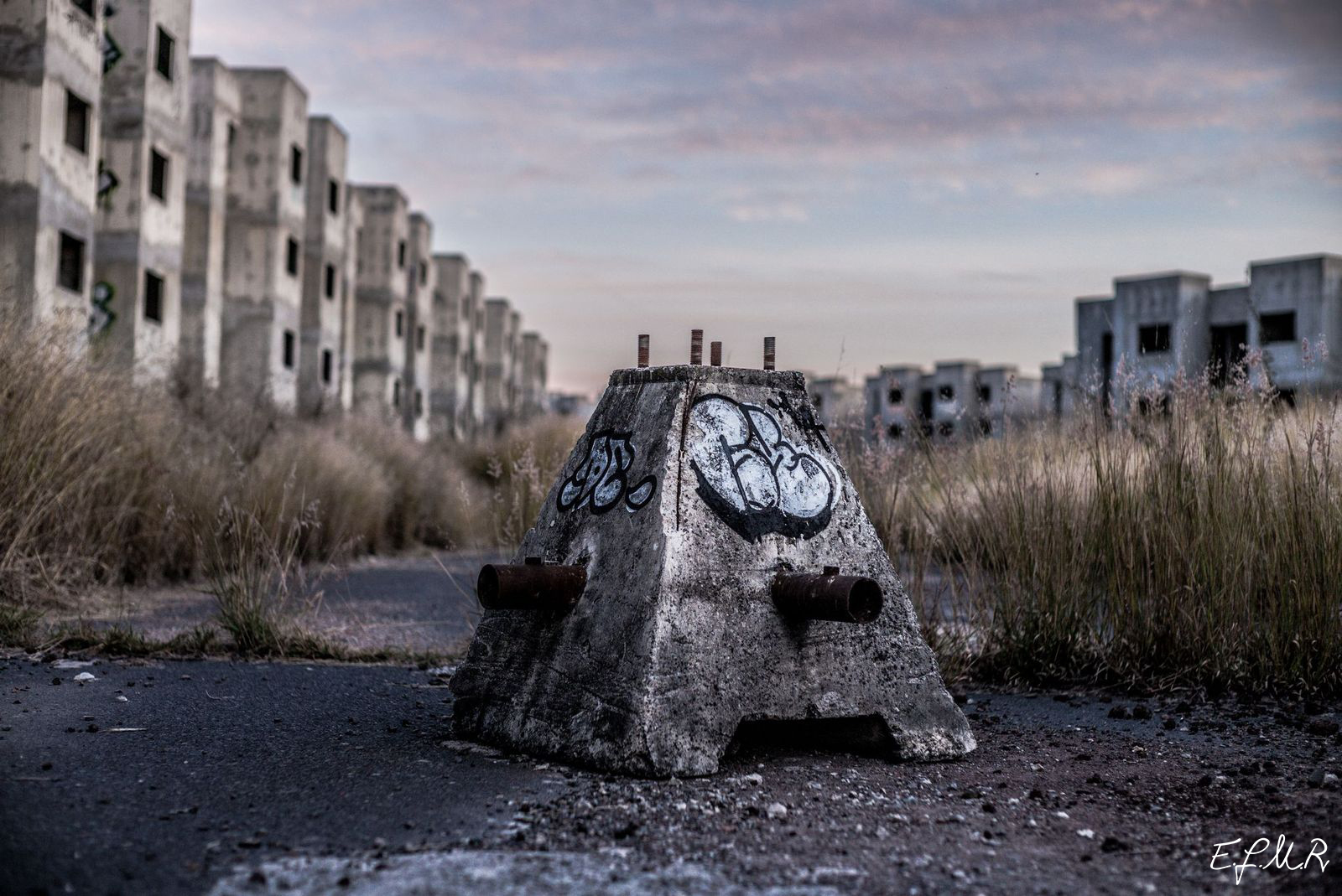 These pictures are a reconceptualization of time and space. A questioning of what happened in these vast empty quarters full of abandoned houses. A narrative of an unexpected place that seems to be inhabit by dolls, ghosts, cement, graffities and tall grass.